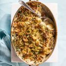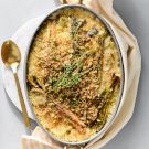 Thinly sliced potatoes and leeks soak up a mixture of milk, cream and broth in this recipe, an easy-to-assemble but luxurious accompaniment to a ham or other roast meats. If you have a mandoline, it’s useful for quickly slicing the potatoes into uniform slices.