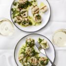 In our Mediterranean twist on chimichurri, the classic Argentinean condiment, we toss some Castelvetrano olives into the mix. This bright and briny sauce pairs perfectly with the sweet, nutty notes of sea scallops. Add them to a buttery risotto or lemony spaghetti, or serve with roasted seasonal vegetables alongside. Try to purchase scallops on the larger side, as they’re more likely to be tender and will brown at the same rate as the inside cooks. That way, they won’t overcook and will have a smooth, buttery texture, rather than a chewy one.