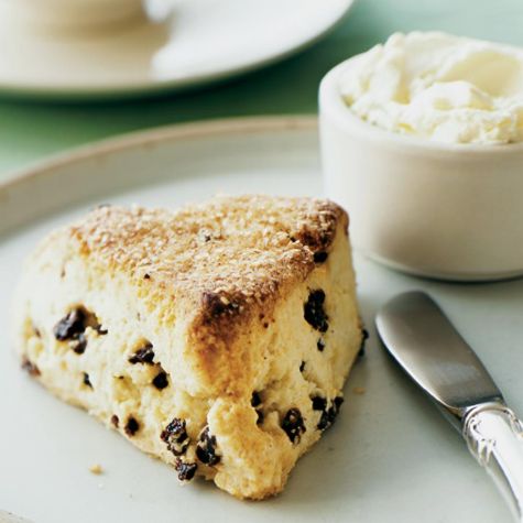To make the dough with a food processor, combine the flour, granulated sugar, baking powder, salt and lemon zest in the processor and pulse 2 or 3 times to mix. Add the butter and pulse 7 or 8 times, just until the mixture forms large, coarse crumbs the size of peas. Scatter the currants over the dough. Pour in the cream and pulse just until moistened.
