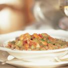 Gumbo is the name given to a wide array of rich soups served throughout the coastal South. Some are thickened with okra, some are thickened with a roux, a cooked mixture of fat and flour, and others by the addition of filé (sassafras) powder. This version uses a combination of both okra and roux. In New Orleans and bayou country, the stockpot is generally filled with shellfish, while the prairie Cajuns prefer a hearty mix of chicken and smoked sausage. Both types of gumbo, however, are always served over steamed rice, along with plenty of hot French bread or corn bread.