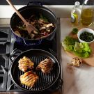 Award-winning New York chef, restaurateur and cookbook author Seamus Mullen is known for his inventive yet approachable Spanish cuisine and unique approach to healthy cooking. Here he shares a recipe he created for us using the versatile Staub braise and grill pan, a Dutch oven with a lid that doubles as a grill pan. Serve it as the first course of an Asian-inspired meal, or as an hors d’oeuvres—serving the braised chicken in lettuce cups makes it a great finger food. Black bean garlic sauce is stocked at most larger grocery stores, though you may need to visit an Asian grocer to find the Chinese black vinegar, which adds a unique smoky flavor to foods.
