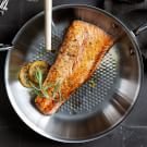 In a nonstick fry pan over medium-high heat, warm the grapeseed oil. Add the salmon fillets, skin side down, and cook until browned and crisp, about 5 minutes. Flip the filets and sear, flesh side down until the salmon is browned on both sides and cooked throughout, 3 to 5 minutes, depending on the thickness of the fillets. (For thick fillets, flip the salmon back to skin side down, transfer to the preheated oven, and continue cooking until the salmon is opaque throughout when tested with the tip of a knife.)