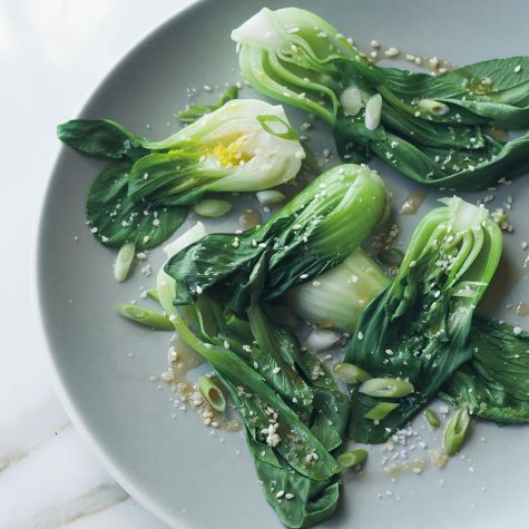 Bok choy has a high water density, so steaming it, rather than stir-frying it, preserves some of its structure and crunch. Here, a light dressing of fragrant sesame oil, crunchy sesame seeds and tender green onions coats the vegetable to add extra flavor.