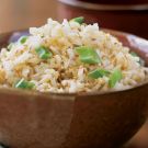 Medium-grain brown rice, often sold as short-grain brown rice, has a sticky texture and a nutlike aroma and taste. Asian sesame oil, which has a rich toasted flavor, complements the distinctive nature of the rice. If there are leftovers, transform them into a rice salad by adding grated carrot and a generous drizzle of rice vinegar.