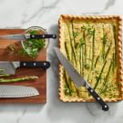 This is a favorite Test Kitchen throw-together spring tart after shopping at the San Francisco Ferry Building Farmers’ Market on Saturday mornings. The filling features whole asparagus spears enriched with eggs, cream, goat cheese and Parmesan, all baked in a quarter sheet pan. It makes a perfect centerpiece for brunch or lunch, paired with a tossed green salad. Keep in mind that the color of the filling will vary, depending on the brightness of your egg yolks. We love using eggs from chickens that were fed marigold petals, which lend a lovely orange hue. You can make your own tart dough with the recipe below or purchase ready-to-use pie dough.