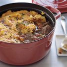 This dish is the ultimate in comfort food. Short ribs are braised in a flavorful cooking liquid, then the meat is removed from the bones and returned to the pot. The dish is topped with creamy polenta and baked until golden.