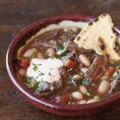 Short ribs braise slowly in the oven and come out caramelized and tender. This savory stew uses the shredded meat and the braising liquid. It’s a great way to use leftover short rib meat (and if you don’t have any leftover braising liquid, add beef broth instead).