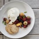 This dessert proves that simple can be the best—peak-of-season summer berries and stone fruit served with buttery shortbread cookies and whipped cream. When we served it at a dinner in Northern California, we used shortbread cookies from Marin County’s Rustic Bakery, a local favorite, but use the best shortbread you can find in your area—or make them from scratch, if you prefer.