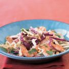 Toss this colorful salad thoroughly before serving so that the crunchy shreds of cabbage are well coated with the tangy dressing. Lime juice, fish sauce and a little sugar give it a sweet-sour-salty kick. For a shortcut, use preshredded cabbage, available in the salad section of the supermarket.