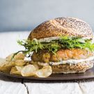 By pulsing half of the shrimp for these burgers in a food processor, it creates the perfect texture for binding the ingredients together. This way you can skip the usual bread crumbs, which means you get maximum shrimp flavor in your burgers. Serve with sweet potato fries and pass extra aioli for dipping.