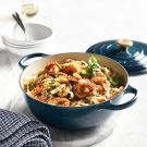 Using tongs, transfer the pasta directly to the pot with the shrimp mixture. Add the remaining 4 Tbs. (2 oz./60 g) butter and the lemon juice and toss until the pasta is coated. If necessary, add some of the pasta water a spoonful at a time, stirring between additions, until the pasta is thoroughly coated with a silky sauce.