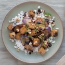 - 1/2 lb. (250 g) baked tofu, cut into 1/2-inch (12-mm) cubes