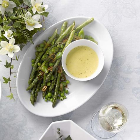 • Asparagus, Peas and Fava Beans with Hollandaise Sauce