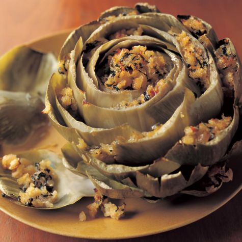 • Stuffed Artichokes with Spicy Herbed Bread Crumbs