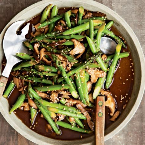 • Stir-Fried Asparagus with Shiitakes and Sesame Seeds