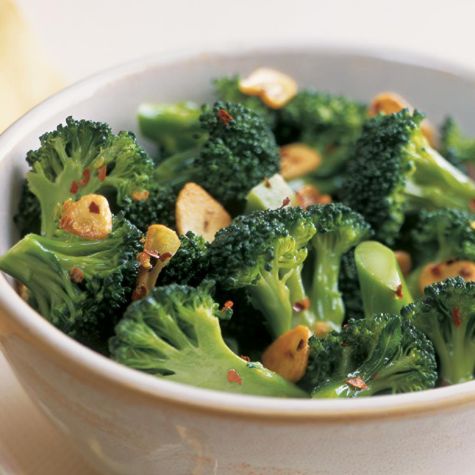 • Broccoli with Red Pepper Flakes and Garlic Chips