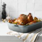 The simplest way to prepare a whole chicken is also one of the most satisfying: roasted in the oven until cooked to juicy perfection. Cook it now and you’ll have an easy dinner for two tonight as well as plenty of leftovers to incorporate into another dish tomorrow.