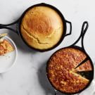 According to Al Roker, weather and feature anchor and co-host of TODAY, corn bread baked in a cast-iron skillet is a simple, rustic pleasure that can be adapted any way you like. It can be a little sweet, or a little bit savory. You can add cheese or bacon, or just enjoy it hot out of the oven slathered with butter and a dab of honey. You can dress it up or you can dress it down, but it’s always a welcome addition to the Thanksgiving table.