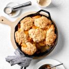 An old-fashioned American classic that never goes out of style, cobblers are a wonderful way to showcase fresh summer peaches, and ours will be a guaranteed hit with Dad on Father’s Day. We bake the cobbler in a cast-iron skillet, which provides steady, even heat. When buying peaches, choose ones that are slightly firm but still give a little when pressed at the stem end. Be sure to peel the peaches before slicing them; the skins will slip right off after plunging the fruit in a pot of boiling water.