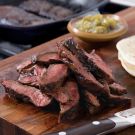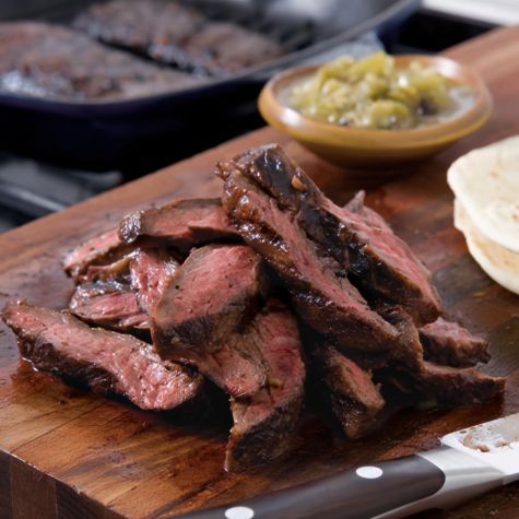 Remove the steaks from the marinade and pat dry with paper towels; discard the marinade. Grill the skirt steaks directly over high heat, turning once, 3 to 4 minutes per side for medium-rare, or until done to your liking. Meanwhile, wrap the tortillas in aluminum foil and place them on the side of the grill to warm.