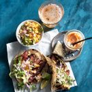 Thinly slice the steak across the grain. To assemble a taco, dollop 1 to 2 Tbs. of the chile-lime mayo on a tortilla, then top with sliced steak and a generous spoonful of the corn mixture. Top with cotija, cabbage, radish and cilantro. Repeat to assemble the remaining tacos. Serve with the lime wedges alongside. Serves 4.