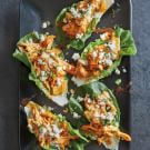In this updated lettuce-wrapped version of Buffalo chicken wings, you have all of the flavorful goodness of the original and none of the guilt that comes with deep-frying. Here, chicken is gently slow-cooked in a beer-based sauce, then shredded, stuffed into crisp lettuce leaves and topped with salty blue cheese for a fresh-tasting, party-worthy dish.