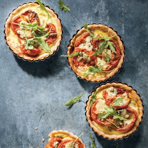 Torte salate, or savory tarts, are enjoyed as an antipasto or sometimes as a quick lunch in Italy. They feature all kinds of vegetables—literally from artichokes to zucchini—but here, we use slow-roasted tomatoes that are punched up with pungent blue cheese for an especially flavorful tart.