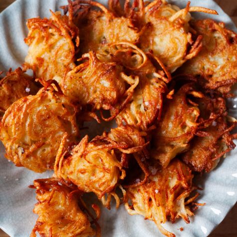 “Everyone makes latkes, fried potato pancakes that are the star of the traditional Ashkenazi Hanukkah celebration, a little differently,” says Smitten Kitchen founder and cookbook author Deb Perelman. “Some are more mashed and thick; some are in smaller bits and very flat. I love them all. But perhaps unsurprisingly, I still think mine are the very best: tangled in a knot, barely tethered with batter, and very crisp.”