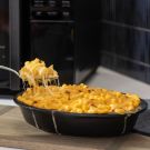 This mac and cheese recipe from Dallas McGarity, chef and owner of the Fat Lamb in Louisville, KY, is finished in the GE Profile™ Smart Indoor Smoker, so each bite is infused with smoky flavor. McGarity recommends using applewood or cherrywood pellets in the smoker when preparing the mac and cheese.