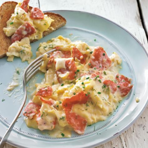 Variation: This scramble is equally delicious made with smoked trout, flaked into chunks, instead of the smoked salmon.