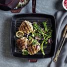 A favorite technique of professional chefs, sous vide cooking is simple to do at home and ensures that your food will be cooked to perfection. Bonus: After cooking your ingredients in the water bath, you can refrigerate everything in the vacuum-sealed bag for up to a day before finishing the dish. Here we cook chicken thighs with red onion and lemon slices using an immersion circulator, then give the food a quick sear in a stovetop grill pan along with some broccoli rabe for an easy and nutritious weeknight meal.