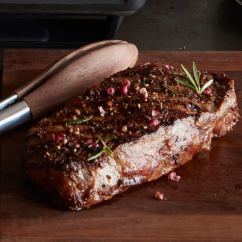 Heat an indoor electric grill on high heat until very hot. Add the steaks and sear, turning once, until a charred crust forms on both sides, about 2 minutes per side.