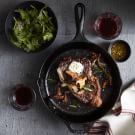 Make It Whole30®: Skip making the tarragon butter. Instead of using the tarragon butter, put 1 Tbs. olive oil or ghee, 1 sprig of fresh tarragon and a smashed garlic clove in each sous vide bag before sealing. While the steaks are cooking make a tarragon pesto: In a small food processor, combine 1/2 cup (2 oz./60 g) toasted pepitas, 3/4 cup (1 oz./30 g) loosely packed fresh tarragon leaves and 2 garlic cloves; process until finely chopped. With the food processor running, slowly drizzle in 1/2 cup (4 fl. oz./125 ml) extra-virgin olive oil. Season with salt and lemon juice to taste. Serve the steaks with some of the tarragon pesto on top. Also, if desired, sauté 1/2 lb. (250 g) broccolini along with the mushrooms until tender.