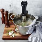 Attach an immersion circulator to a very large stockpot or other large heatproof container. Fill the pot with water until it reaches at least 2 inches (5 cm) above the minimum fill line. Using the immersion circulator, preheat the water to 150°F (66°C) according to the manufacturer’s instructions.