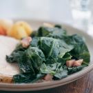 Hearty in flavor and high in nutrients, dark greens, also known as cooking greens, are perfect for braising. Represented by several different vegetable families, they range in flavor from lemony sorrel to peppery turnip greens. Feel free to substitute other hearty greens for the collard greens, or use a mixture.