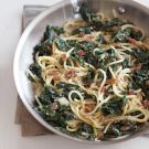 This creative take on spaghetti carbonara, the egg-rich pasta dish from Rome, includes healthful and tasty greens. In Italian fashion, complete the meal with biscotti and fresh fruit.