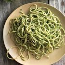 Also known as rocket, arugula is a pleasantly peppery green that has been grown along the Mediterranean since Roman times. Here, arugula and fresh mint are combined to create a sprightly pesto that’s tossed with spaghetti.