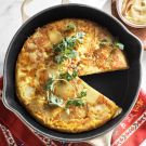 Step inside any tapas bar in Spain and you’ll inevitably find tortilla española on the menu. Filled with thinly sliced potatoes, this Spanish-style omelet is bound together by eggs and laced with nutty-tasting Manchego cheese. Here we also add leeks, which lend delicate sweetness, and serve the tortilla with a garlicky alioli. Don’t be deterred by the large quantity of olive oil used for cooking the potatoes; this will ensure they turn out exceptionally rich and creamy. Pour yourself a glass of icy-cold sangria and dig in. ¡Salud!