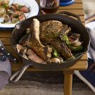Heat a large cast-iron fry pan over a campfire, hot grill, or stove set to medium-high heat until it is very hot, about 3 minutes. Add the steaks to the pan and cook, turning once, until well seared and cooked to medium-rare, 4 to 5 minutes per side, or until cooked to your liking.