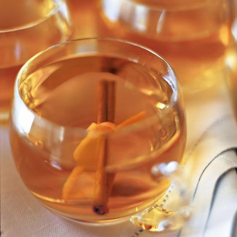 To serve, ladle the cider into cups and garnish each serving with a cinnamon stick tied with orange zest. Serves 10 to 12.