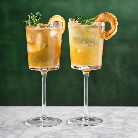 No matter what you’re planning for Thanksgiving Day—be it a sit-down dinner with roast turkey and all the trimmings or a cocktail party featuring festive small plates—cocktails complete the celebration. And since apples are synonymous with autumn, this apple-inspired cocktail is perfect for the holiday. It’s made with bourbon and a dash of bitters, then topped off with sparkling apple cider for bubbly fun. To give the drink a hint of sweetness, we add a little honey syrup spiced with fresh ginger, cinnamon and thyme. The recipe yields one cocktail, so scale it up as needed to serve all your holiday guests.