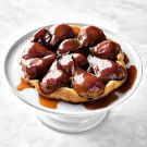 Bake until the crust is golden brown, the pears are tender, and a thick syrup forms in the pan, about 35 minutes. Remove from the oven and let stand at room temperature for about 30 minutes to allow the tart to cool and firm up slightly.