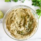 High in fiber, full of many nutrients and a good source of healthy fats, pepitas—toasted pumpkin seeds—are a great addition to a plant-based diet. Perfect as a dip for your favorite vegetables.