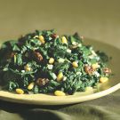 Variation: Use golden raisins or large muscatel raisins in place of the black raisins, and slivered blanched almonds in place of the pine nuts.