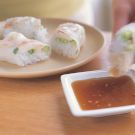 Using a sharp knife, cut each roll in half on the diagonal. Arrange the rolls on a platter and serve with the dipping sauce. Makes 12 spring rolls.