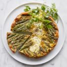When you’re hosting a springtime brunch, a frittata always fits the bill. It’s quick to prepare, takes well to endless variations and tastes equally delicious warm or at room temperature, making it ideal for a buffet. Ours is filled with fresh asparagus and green onions plus goat cheese that becomes irresistibly creamy when cooked.