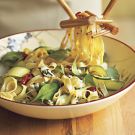 Transfer to warmed pasta bowls and sprinkle with the remaining goat cheese. Serve immediately. Serves 2.