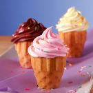 To frost the cupcakes, fit a pastry bag with a large star tip and fill with frosting. Pipe the frosting on the cupcakes, swirling it on the top to resemble soft-serve ice cream. Makes 12 cupcakes.