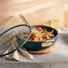 Pasta alla checca, as this dish is called in Italy, is quick, light and fresh, making it perfect for the summer months, when tomatoes are in abundance and at their peak. Cookbook author and actor Stanley Tucci explains, “When I was working a lot in Los Angeles, it seemed that every restaurant had it on their menu—which is hardly surprising: they have access to terrific tomatoes year-round.” If you have a heat diffuser, use it when sautéing the garlic and onion; you want them to soften but not take on any color before adding the tomatoes.