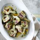 Baby artichokes are less prickly than their larger cousins that grow on the same plant, and typically they have not developed a fuzzy choke, both of which make them easier to prepare than the larger variety. In fact, in Italy they are even eaten raw, thinly sliced and tossed with lemon juice and olive oil. Here they are lightly cooked with lemon, garlic and herbs for a flavorful dish that speaks of spring.
